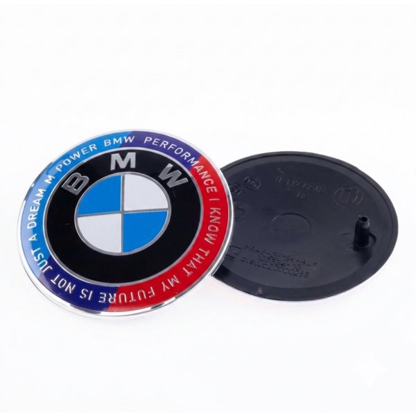 Емблема значок BMW БМВ 82мм Ювілейна 50 років Motorsport напис по колу Триколор на капот і багажник
