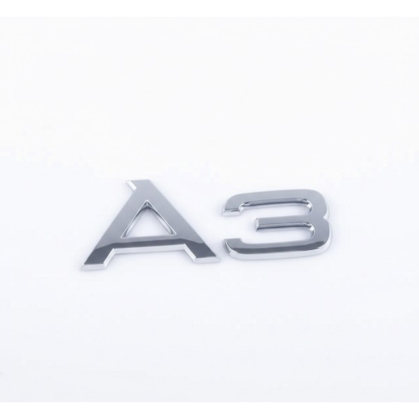 Шильдик, наклейка напис A3 у хромованому кольорі, на кришку багажника автомобіля Audi