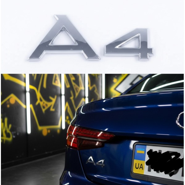 Шильдик, наклейка напис A4 у хромованому кольорі, на кришку багажника автомобіля Audi