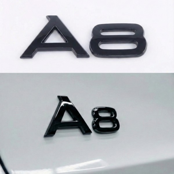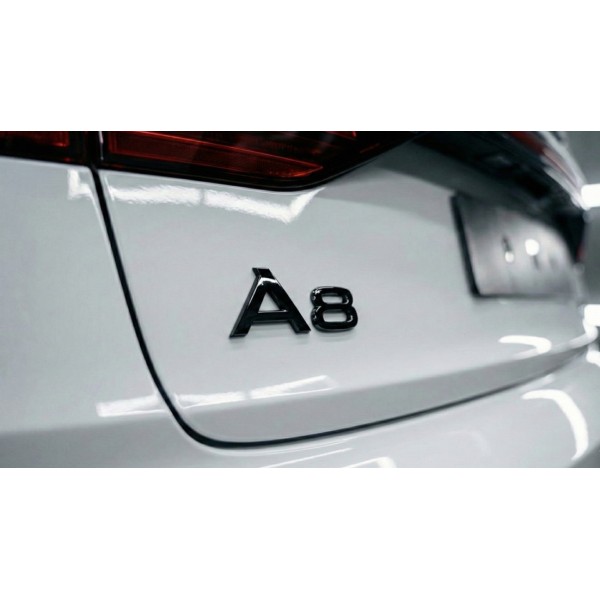 Шильдик, наклейка напис A8 у чорному кольорі, на кришку багажника автомобіля Audi