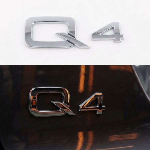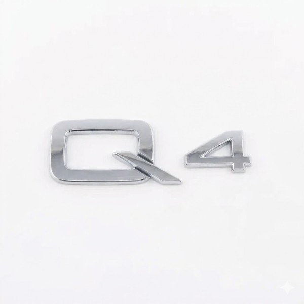 Шильдик, наклейка напис Q4 у хромованому кольорі, на кришку багажника автомобіля Audi