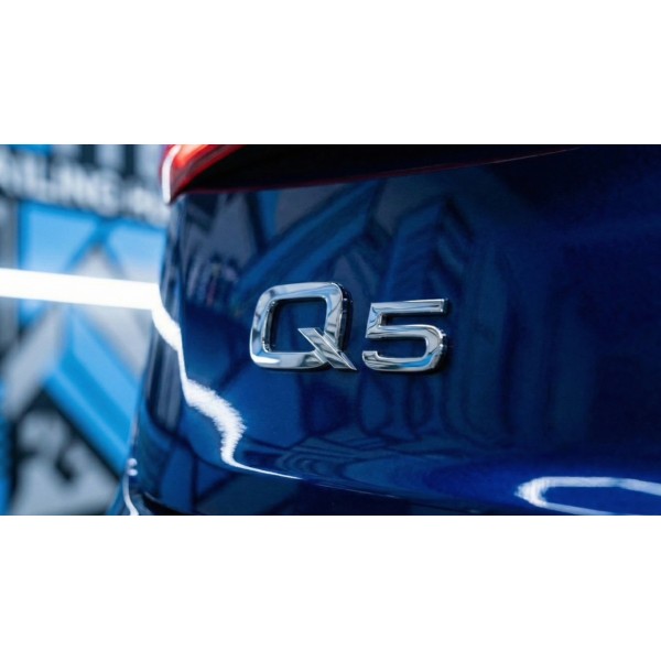 Шильдик, наклейка напис Q5 у хромованому кольорі, на кришку багажника автомобіля Audi