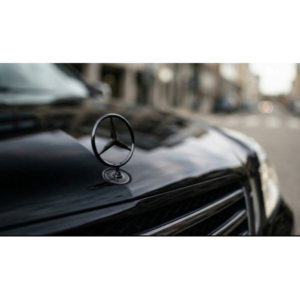В наявності емблеми, значки, штерни приціли в капот Mercedes-Benz повністю чорний глянець з надписом