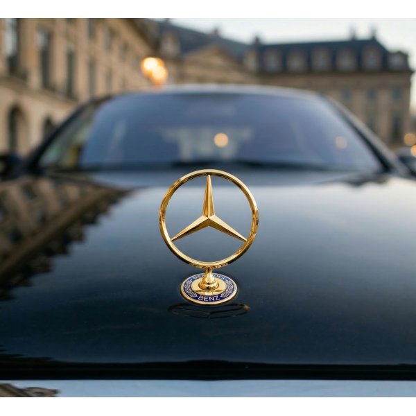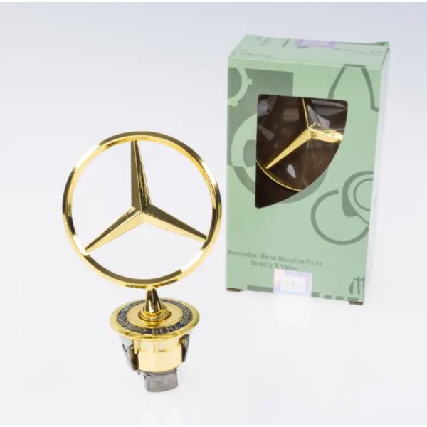 В наявності емблеми, значки, штерни приціли в капот Mercedes-Benz золотий