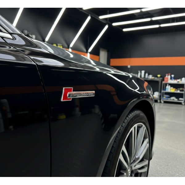 Емблема шильдик на крила, напис значок на крило Audi Ауді Supercharged Суперчарджед Червоний+хром