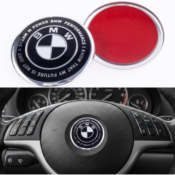 Емблема в кермо BMW БМВ 45мм Ювілейна 50 років Motorsport напис по колу Чорно біла
