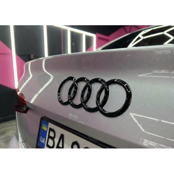 Емблема задня Audi Ауді 203мм A4 (B9), A5 (F5), A6 (C8), A7 (C8), Q5, Q8 Чорний глянець кільця