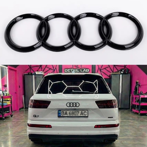 Емблема задня Audi Ауді Q7 (4M) 2015-... 230 x 80 мм Чорний глянець чорні кільця