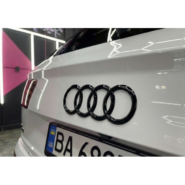 Емблема задня Audi Ауді 230мм Q7 4M 2015-... - Чорний глянець чорні кільця