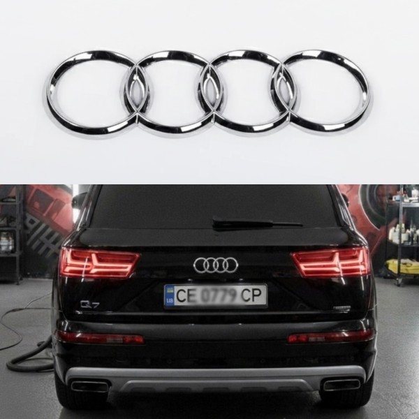 Емблема задня Audi Ауді 230мм Q7 4M 2015-... - Хром, хромовані кільця