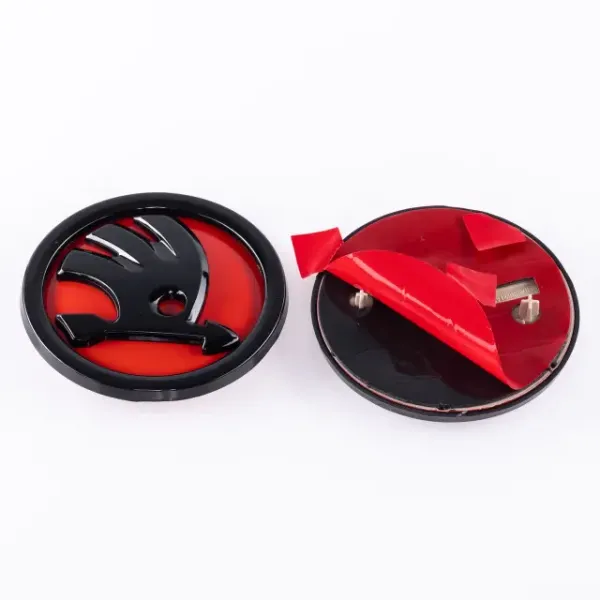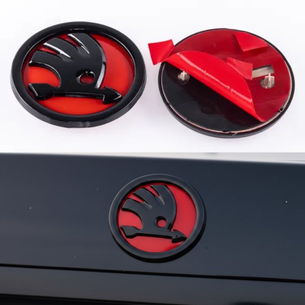 Емблема значок на капот, багажник Skoda Шкода 80мм чорно червоний 5JD853621A