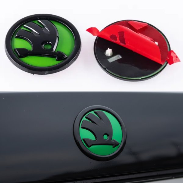 Emblem badge on the hood , trunk Skoda Skoda 80 mm black green 5JD853621A