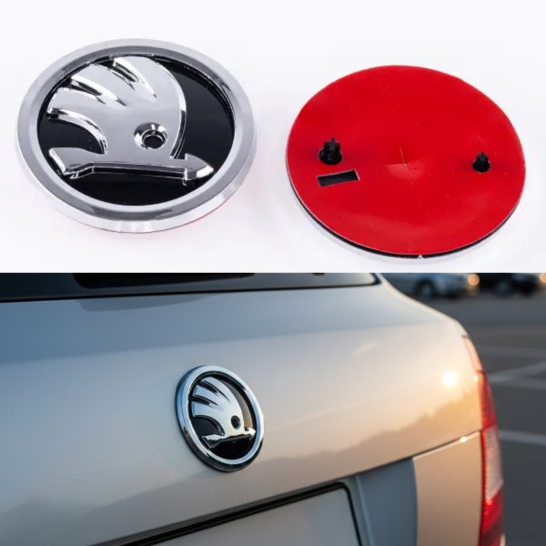 Emblem badge on the hood , trunk Skoda Skoda 80 mm Chrome , black