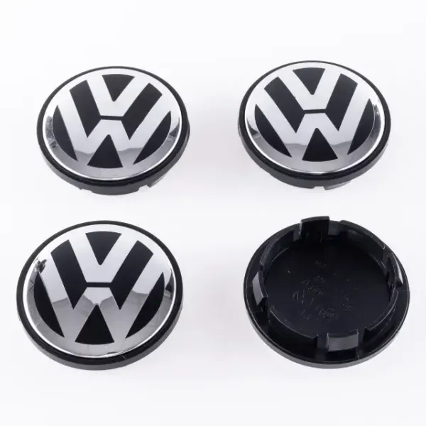 Комплект ковпачків (заглушок) на литі диски VW (Фольксваген) 65 мм Хром лого, Чорні (7L6601149B)