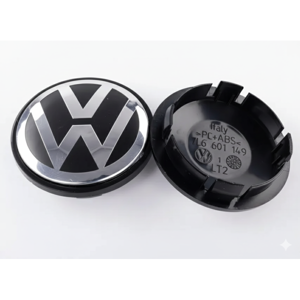 Ковпачки (заглушки) на литі диски VW (Фольксваген) 76 мм Хром лого, Чорні (7L6601149)