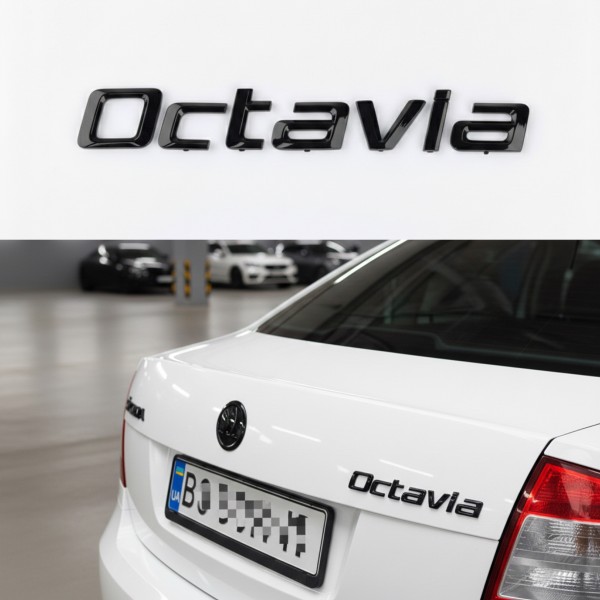 Шильдик емблема на багажник OCTAVIA для SKODA, Октавія для Шкода чорний