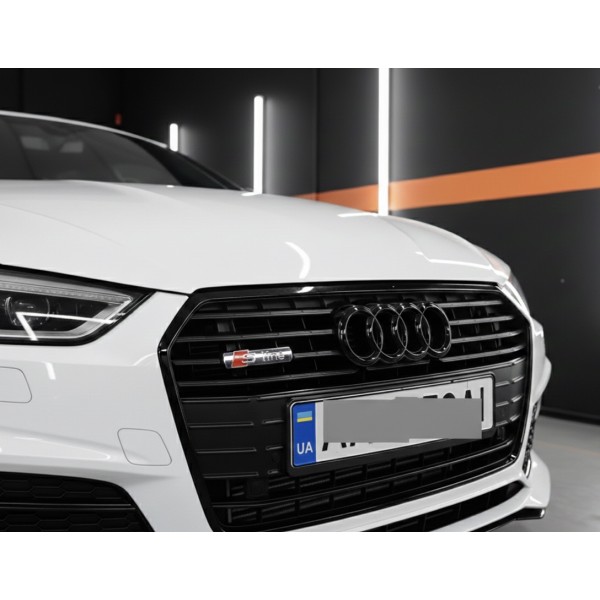 Шильдик S-line у решітку радіатора автомобіля Audi